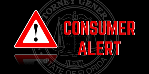 The Florida Attorney General's Consumer Protection Division issues Consumer Alerts to inform Floridians of emerging scams, new methods used to commit fraud, increased reports of common scams or any other deceptive practice. Consumer Alerts are designed to educate Floridians about scams in an effort to prevent financial losses or other harm caused by deceptive practices. Anyone encountering a scam should report the incident to the Florida Attorney General's Office by calling 1(866) 9NO-SCAM or visiting MyFloridaLegal.com.