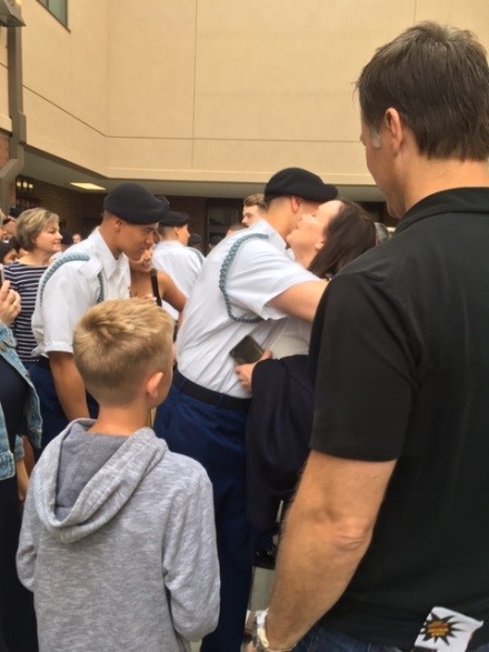 Attorney General Moody celebrating Brandon Duralia becoming an official member of the United States Army Infantry, along with husband Justin Duralia and youngest son Connor. Brandon received infantry blue cords at a Turning Blue ceremony after completing training at Fort Benning. Attorney General Moody is proud of Brandon and all military members serving to protect Americans.