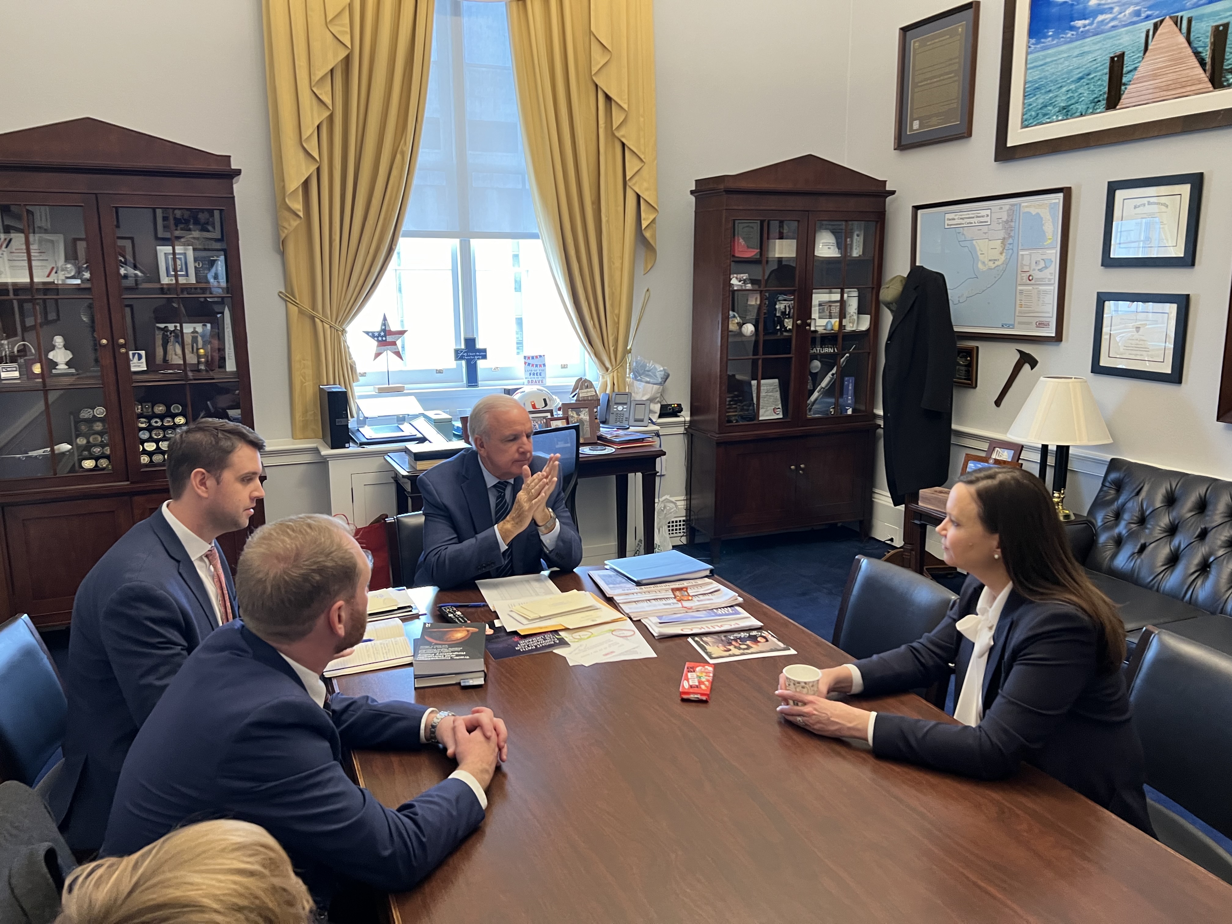 Attorney General Moody meeting with Rep. Carlos Giménez of Florida’s 28th district inside Rep. Gimenez’s U.S. Capitol office.